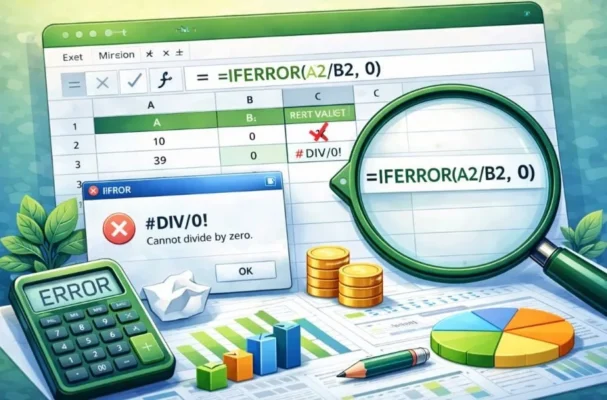 کار با فرمولها در اکسل همیشه بدون خطا نیست. گاهی با خطاهایی مثل #DIV/0!،#VALUE! یا #N/A مواجه میشویم که ظاهر فایل را شلوغ و فهم نتایج را سخت میکند. برای مدیریت این خطاها، اکسل تابعی کاربردی به نام IFERROR در اختیار کاربران قرار داده است. این تابع کمک میکند بهجای نمایش خطا، یک مقدار دلخواه یا پیام مشخص نمایش داده شود.