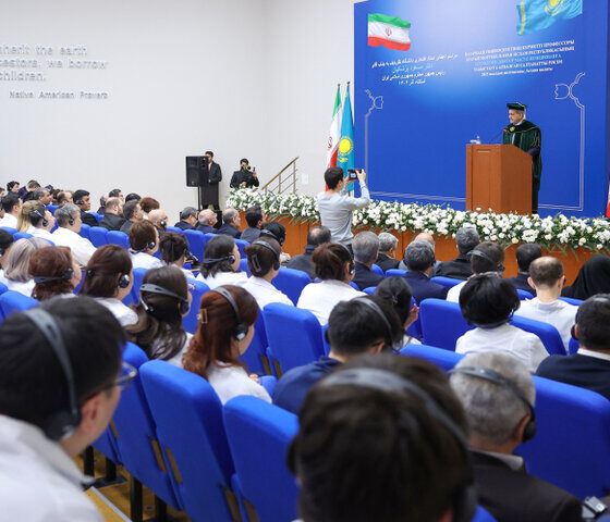 دکتر مسعود پزشکیان بعد از ظهر امروز پنجشنبه ۲۰ آذر ۱۴۰۴ به وقت محلی، در ادامه برنامههای سفر به قزاقستان، در مراسم دریافت دکترای افتخاری دانشگاه بینالمللی نظربایف، طی سخنانی در جمع اساتید، پژوهشگران و دانشجویان این دانشگاه، ابراز خرسندی کرد که در مرکزی حضور یافته است که سالها یکی از برجستهترین مراکز علمی منطقه در حوزه علوم پزشکی بوده و نقشی مهم در ارتقای سلامت مردم قزاقستان و توسعه دانش پزشکی ایفا کرده است.