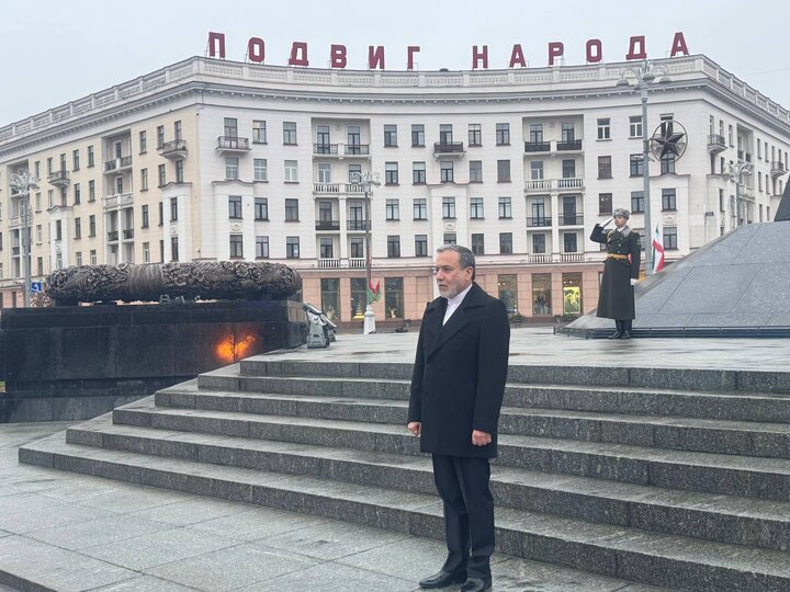 مراسم اهدای تاج گل به یادمان پیروزی در شهر مینسک با حضور وزیر امور خارجه کشورمان برگزار شد.