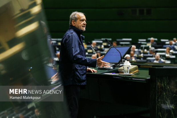 به گزارش خبرنگار مهر، مسعود پزشکیان رئیسجمهور در جلسه علنی امروز (سهشنبه ۲ آبان ماه) مجلس شورای اسلامی، لایحه بودجه سال آینده کشور را تقدیم محمدباقر قالیباف، رئیس مجلس شورای اسلامی کرد.
