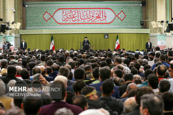 بعد از چند دقیقهای قرائت قرآن، انتظارها به سر آمد و حضرت آیت الله خامنهای بیاناتشانرا آغاز کردند.
