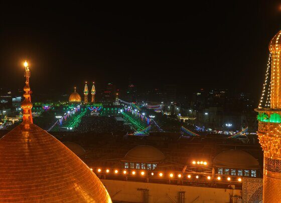 تصاویری هوایی از حضور پرشور زائران در کربلا و چراغانی حرم های مطهر ثبت شده است.